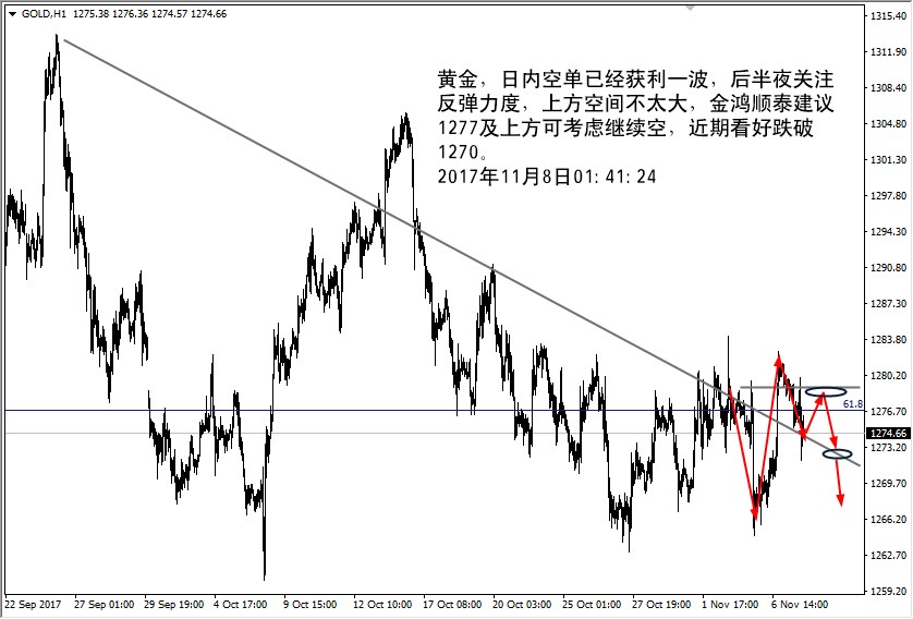 11月日8黄金走势分析,上方支撑位下方阻力位是哪里、是涨还是跌、如何操作、空单被套怎么办? 没有不成功的投资,只有不成功的操作。就算你现在亏损了,那也没什么可怕的,只要选择正确,失去的都会再回来。聪明人,总是结伴而行,把握做单时机,掌握行情动向,方可百战百胜。一个成熟稳重的人从不打没把握的仗。 有人问,丢
