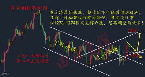 黄金行情技术分析 黄金日线上隔日的拉升后短期价格继续维持区间震荡不变,不过上方再一次对1283阻力位的测试给了我们很多的想象性,特别是多头几乎要被吞噬的情况下还能力挽狂澜,让我们再次对其充满了期待;日线布林带连续的持平,上方中轨线的突破依旧是多头能否取得优势的关键,短周期MA5/MA10金叉运行,MACD指标红色动能