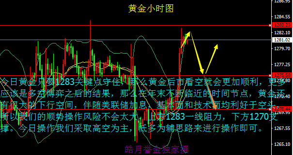 黄金:黄金早间开盘1269.9美元,目前黄金从盘面上看,黄金依旧未能走出弱势格局,黄金后市依旧不乐观。日线级别中,数据还是双边多空矛盾,行情反复行情,日线连续两根收阳都未能站稳1280一线,收两根上引线阳线,上周五美盘开盘小时线又双针探顶迹象,给出强烈下跌的信号,一阴又要吞掉前面几个交易日的震荡反弹的碎阳了,
