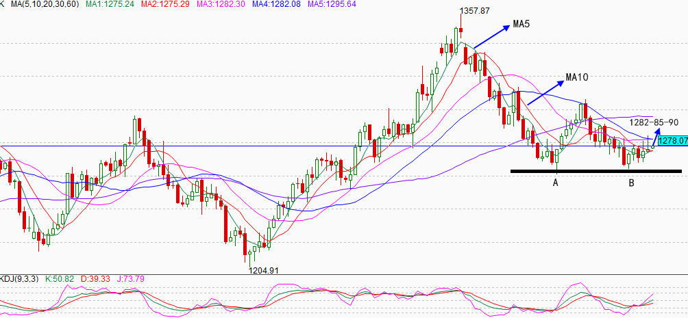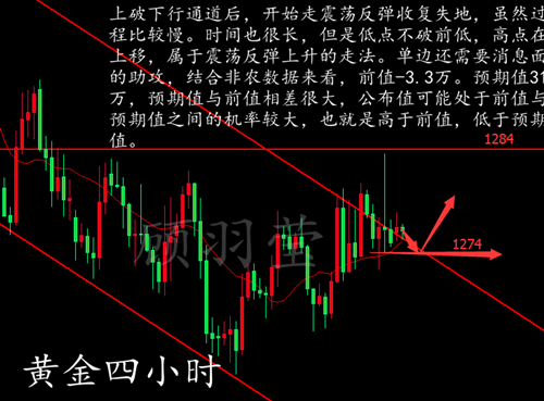 本周众所周知是超级数据周,不管行情走向是众望所归还是剑走偏锋,我们投资者一定要保持头脑清醒,所谓兵来将挡,水来土淹,思路清晰,端正态度,灵活处理你绝对会无往不利。 昨日行情反复冲高,再一次触及到1283.9附近,上周的高点也是在1283.5美元,1283-84一线的位置也是我最近一直强调的关键性阻力,而如今再次在这里受