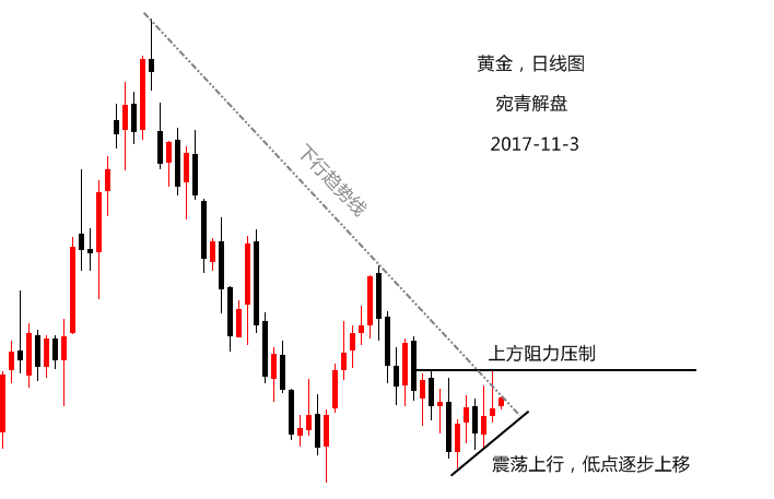 每个人从呱呱落地那天起,就注定了要走一条自己的路,有的很长,有的很短,有的成功,有的失败,有的大成大败千转百回。不管怎样的路,到最后都回空空而往。生命的价值在于被别人需要,就如同金钱的价值在于使用。 在本周,黄金依然保持了震荡的格局,只是不如上周规律地阴阳循环那么简单。就日线图来看,虽然低点在上移,但