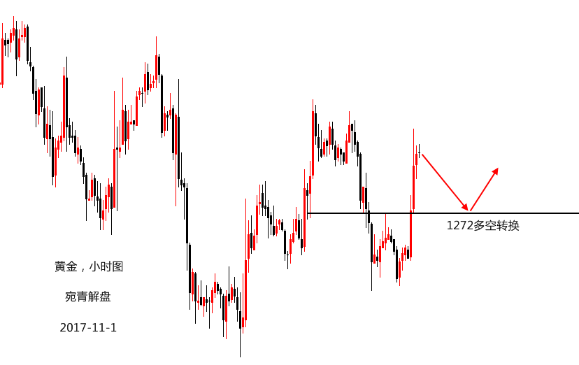 文/凌悦然 黄金消息面解读: 周二(10月31日)由于美国靓丽的经济数据提振美元指数,导致金价小幅走低,日内整体在1265-1280美元间交投。国际现货黄金周三(11月1日)亚市早盘继续承压交投在1270美元/盎司下方,午间黄金则直线反弹至1277一线,简单点来说填补了昨日因消息面影响的下跌。悦然在昨日后半夜及今晨布局的多单直线获