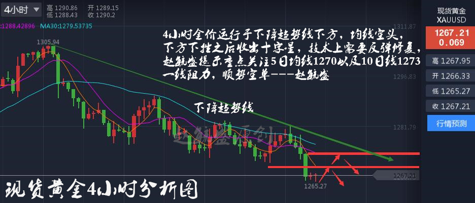 肖礼勇:10.27黄金面临1260强大支撑,1270空单进仓 黄金昨天受到欧元区缩减影响再次穿底,跌破1270,日线倒锤子形态。一路下跌,今日白天黄金反抽力度不大,再次下跌。 笔者说过1270破位后,还有下跌空间,因为1270已经连续几天支撑住。 上方阻力依然在1270 下方支撑明显是1260. 而1260是强大的支撑点。 因为1260在10月份初