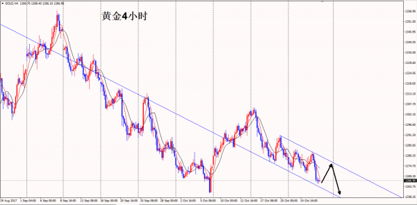 韩颖玥:10.27黄金原油日内操作建议 周四(10月26日)投资市场经历了本周最不平静的一天!国际现货黄金也跌幅扩大,一度跌破1270美元关口,美市盘中最低下探至1268.20美元/盎司,欧洲股市在欧洲央行决议公布后获得提振,因利率上升的风险暂时消除,投资者开始重新将资金转向风险资产,例如股市,但黄金和债券等避险资产则遭到