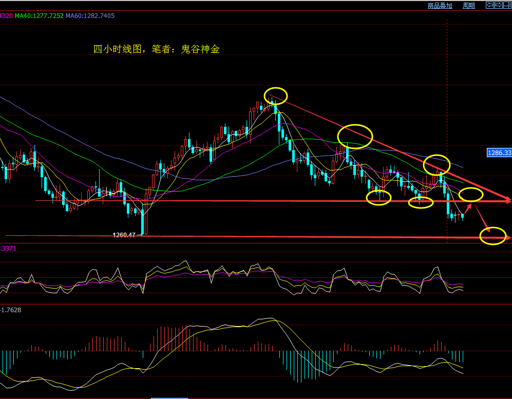 舒宇秦:多日循环1270终告破,黄金进一步走弱还是反弹空 最近的行情舒宇秦一直都是定义为一个大级别的震荡走势,或者也可以说是一个反复的整理走势,本周前面几日行情一直围绕1270-1283这十来个点的区间反复的上下波动,时间循环走势,基本上都是一样的走法,午后开始走弱下跌,然后凌晨开始反弹,第二天接着继续。不过这样