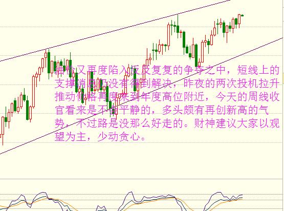 黄金走势分析: 周四黄金晚间可谓一波三折。机构介入后黄金短线自1272拉升到1279一线,使得初请的利空影响延后产生效果,黄金再次受到上方强力压制。快速回落1274一线。美元也不甘寂寞加入到混战之中。黄金多空扑朔迷离。周初的看跌,周中的看反弹,到了周尾一切都归于平静。整体来看行情依然处在震荡之中。那么下周的非农就