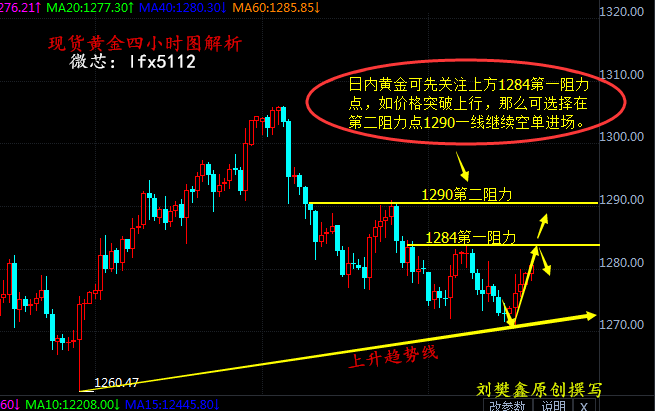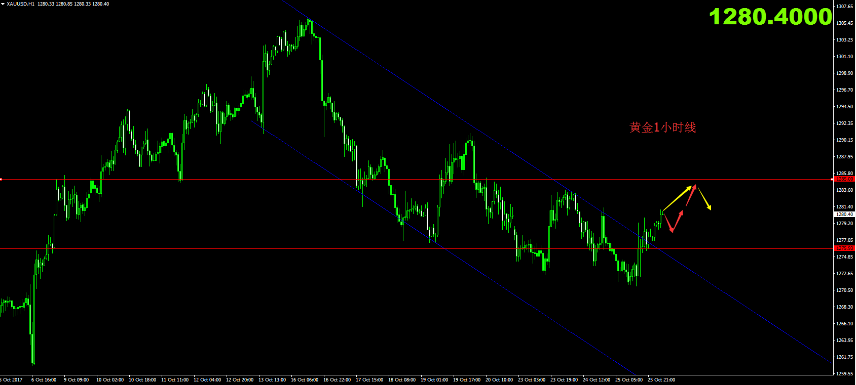 (北京时间10.26赵毓盛/撰)昨日的黄金可以说是走出了一个反转的走势,在凌晨时段上行测试1281美元之后,迅速回踩,早间延续弱势,最低触及1270美元一线,而在晚盘时段,在巨量的恐慌性的买单以及美股下跌的支撑下,现货黄金价格一度飙涨,逼近1280美元;而毓盛团队顺势在1270-1271区间布局晚间的多单,拿到了不菲的利润,