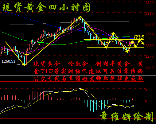 10.24李贤瑛:加拿大央行静悄悄来临,黄金多头会是新转机? 周一黄金早间开盘位于1277一线,美指延续涨势,触及上方受压线1278后下破1276刷新点回落至1274附近,欧美盘相对利空,位于1275至1272三个点之间来回震荡。 1小时上,黄金自昨晚大幅拉升后,收盘于1280以上。周一一天的弱势行情,在晚间全部修复。早间黄金开盘一直