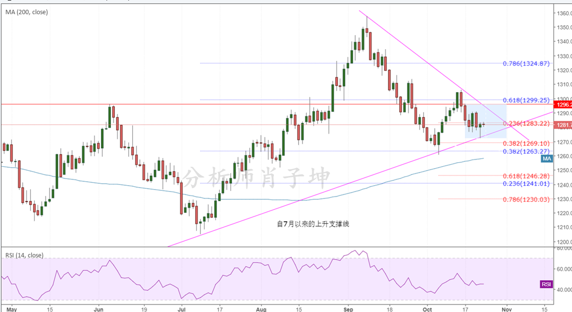 任何东西只要足够迷惑你,就足以毁了你,并非心软是病,情深致命,市场多少人为了证明自己,最终迷失自我。人生里面不断的填充,也要学会掏空,努力是为了有更高层次的认知,而推倒归零是为了不 膨胀永往直前。抬头是为远方,低头是寻找自我。 黄金分析: 黄金周一(10月23日)受到巨量买单的提振,止跌反弹,美市盘中最低下