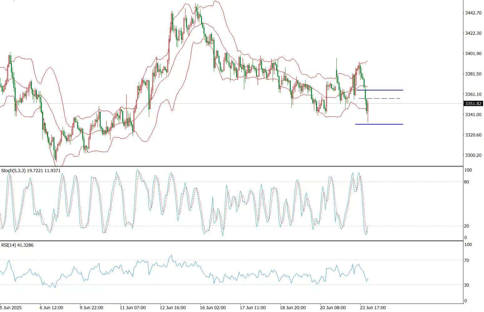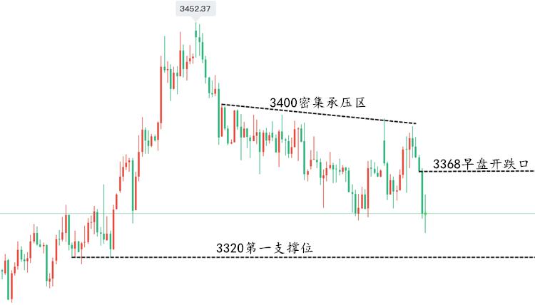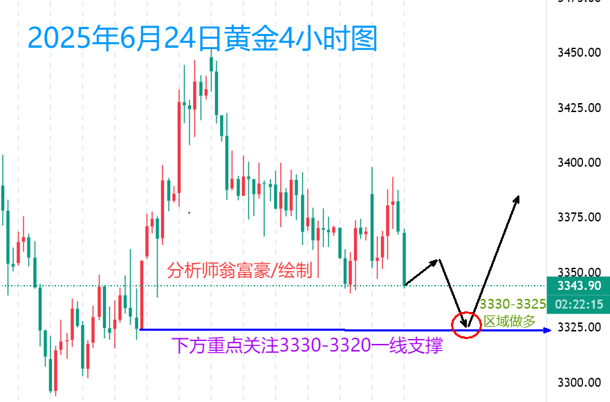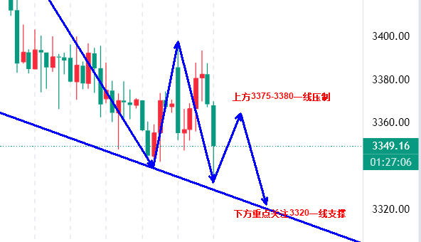 高晓峰:6.24反弹无果显露疲态 金价倾向继续走低 消息面分析: 伊朗对美国实施报复性打击后,美国选择停战未扩大冲突,加之特朗普对伊朗反击的意外“感谢”言论,显著缓解了地缘紧张局势,市场避险情绪快速回落,打压黄金价格。与此同时,特朗普政策方向强化了美联储的鹰派立场,其强硬的货币政策持续施压黄金。尽管地缘风险短期曾推高金价,但在美联储强势抑制通胀、推高利率的背景下,黄金多头的上行动能已消退。综合地缘风险降温和货币紧缩环境持续双重因素,黄金价格未来进一步下行的压力增大,预期前景疲软。 技术面分析: 昨日黄金价格波动剧烈,虽有反弹但整体趋势依然疲软。金价多次上探均未能有效突破前期关键阻力3400,