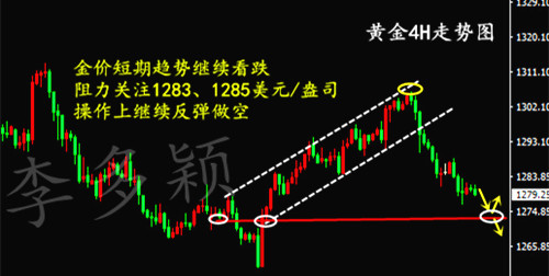 何波军:10.19黄金勿急追进做空,当前市场面临重要阻力 黄金,形态上已经由前期的六连阳而转阴开始走弱,昨日盘金价下破1280支撑后继续下破,最低致1276美元附近,日线终录得略带上下影线的小阴住,维持三连阴排列,价格运行周期均线与布林中轨下方,布林整体有意缩口,短周期指标维持下探,日线级别来看还是空头占优。4小时