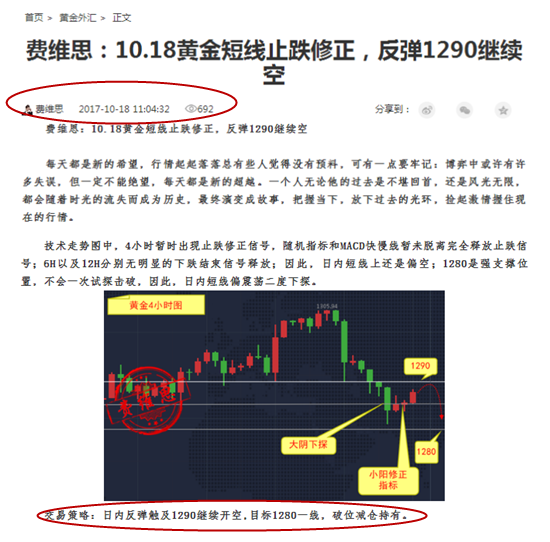 只想不做,我认为是大多数交易者结余无法增长的根源,而根治的最好办法就是少空想多行动。一旦认定了交易方向,就必须用持续有效的行动去代替心中的愿望。因为,行动才是治愈的最好办法,行动才是把结余变成更多美金的唯一途径。 周三,黄金在冲高1288.6遇阻后,亚欧盘迎来持续性下跌,早间起涨点1284破位,前一日低点1281跟