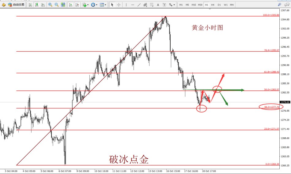 魏韦新:黄金继续关注下行的延续势头,10.19黄金亚欧盘操作建议 文/魏韦新 这几天黄金连续下行,从周一的高点1305跌倒至今最低点的1279,上周持续的多头基本可以确认凉了,在这种大幅单边的空头行情中,相信有不少朋友深陷多单被套的苦恼中,现在确实会比较难受,但不要太着急。任何时候都会有行情出现,把这些行情把握住,