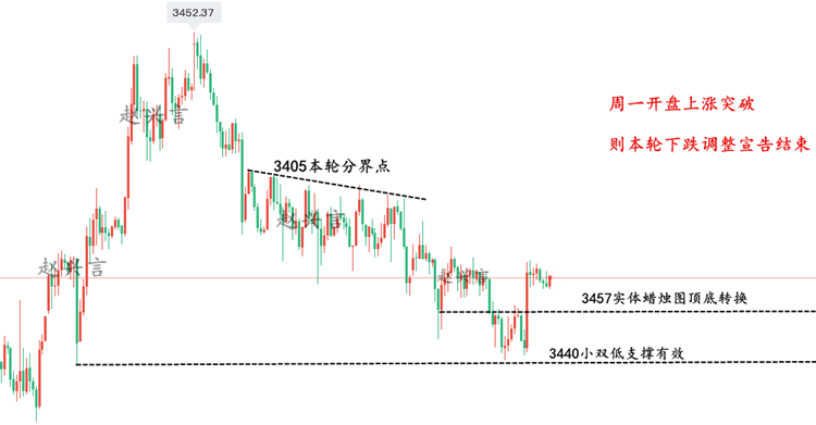 短期关注的重点还是中东问题,伊以冲突持续发酵,老美也下场了,北京时间6月22日,老特宣称美国战机对伊朗福尔多、纳坦兹和伊斯法罕三大核设施发动打击,这一消息瞬间点燃了中东火药桶。此消息对黄金周一开盘时有一定的影响,周一高开似乎已经铁板钉钉,我们强调了一段时间的黄金探底回升也要再此消息的加持下黄金继续反弹,技术面黄金多头完好,再加上消息面刺激,这意味着黄金上涨如虎添翼,相信关注我的朋友都可以看得到,本周我们以探底做多为主,下周依旧开盘继续延续反弹的趋势,如果你目前黄金操作不理想,希望田浩洋能让你的投资少走弯路,欢迎前来沟通交流! 从4小时分析图来看,下方支撑关注3340-45附近,周末中东局势刺
