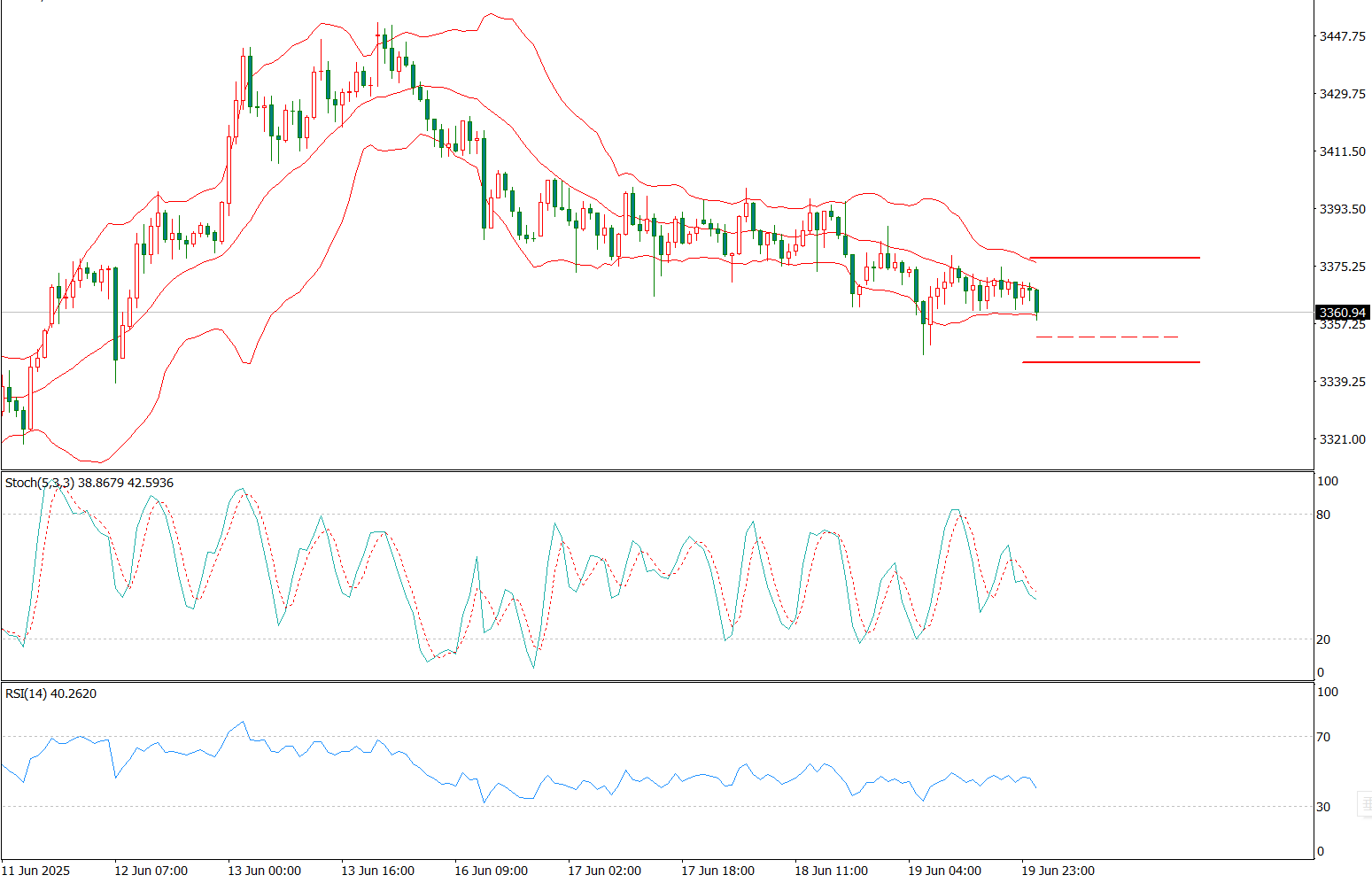 张尧浠:降息仍具前景地缘局势紧张、金价调整仍待走强 上交易日周四(6月19日):国际黄金震荡十字收跌,仍未跌破中轨线支撑,暗示后市下方空间有限,并随时有再度走强上行的风险,如有再度回撤,下方30日或60日均线支撑,也都是再度入场看涨的机会。 具体走势上,金价自 亚市开于3368.92美元/盎司 ,先行走强于9点时段录得 日内高点3387.63美元, 之后又遇阻回落连续走低,于亚盘尾录得 日内低点3347.60美元, 就此多单进场持有,走势也就此触底回升,一度冲击3380美元一线,最终再度遇阻回落,处于3360美元上方震荡,最终 收于3368.74美元,日振幅40.03美元,收跌0.18美元。