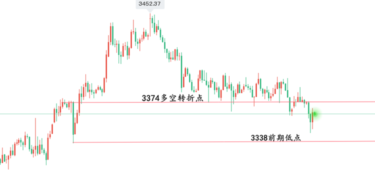 在周四清淡的交易中,黄金早盘的反弹也是昙花一现,早盘由于中东局势再度紧张,黄金价格在周四早些时候的周低点3363美元/盎司附近找到新的买家。然而,由于黄金买家似乎在对美元的需求复苏中挣扎,因为美元是另一种安全押注,导致黄金直接跌破的早盘的低点,目前来说空头还是占优! 午后通知学员们在3370附近进场了一个多单,原打算是看到3385附近就可以调仓出多做空,可惜黄金一步到位直接跌到了3350,今天的第一轮多单也是遗憾止损在3364!错了就要认,后续先看跌幅深度和空间再考虑是否要继续博弈反抽! 对于欧盘黄金走势的看法! 走势上又是打了我们一个出其不意,早盘一直维稳在3370上方,而临近午后也是一直