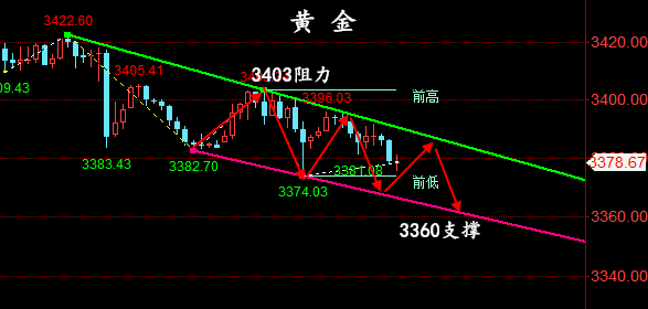 图文所示:24小时节奏预期 一句话看懂黄金Gold:美元大涨基调下,黄金下行连续性却不佳,多次局部新低被收回,表明黄金短线有望止跌回升。 预计今日波幅:65美元 空头阻力价2:3423.00 空头阻力价1:3400.00 多空均衡价:3382.00 多头支撑价1:3366.00 多头支撑价2:3338.00 观点分享,仅供学习参考,不构成交易建议。投资有风险,盈亏均自负。 社区官网http://www.jingsonginc.com