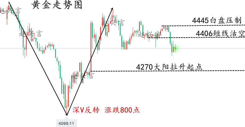 黄金白天跌400个点,晚上再涨400多个点,昨天的深度洗盘我想没有人可以预测到,白天黑夜直接给市场上演了一场剧烈的“深V”走势。而在这轮暴跌暴涨的走势背后,原因则是懂王的言论操控导致的市场巨震了! 黄金为何暴跌?为何暴涨? 1、下跌是美国懂王一度威胁,若伊朗未在48小时内重新开放霍尔木兹海峡,美国将打击伊朗电力基础设施,这一威胁迅速引发市场对中东局势升级的担忧,也令美元避险买盘升温,黄金则在隔夜重挫近9%,最低跌至4100关口! 2、上涨是因为随后懂王又称,美方正与伊朗进行“富有成效”的沟通,美方将推迟摧毁伊朗主要发电设施的计划。受此影响,黄金自低位快速反弹,自懂王早间发文后涨幅一度达到6%