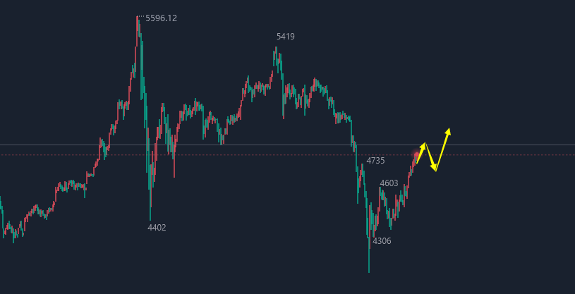 黄金日k四连阳,价格冲高4800附近受阻走回撤,上演高位跳水,这里面有消息面的影响,指标上,一路慢牛上扬,也需要缓口气,回撤很正常,毕竟那么多疯狂高位追涨的,突然来个急刹车,降降温,其实也是好事,不回调,低多怎么入场呢? 金价反弹试探布林中轨,受压走回调当中了,MA5跟MA10形成金叉向上,价格上冲试探MA20受阻,目前价格依旧位于MA5跟MA10上方,MACD空头能量持续缩量当中。 4小时级别,金价在布林带上轨受阻走回撤,连续两根大阴线下来,接下来关注中轨支撑4620附近。小时图级别,价格压着布林带下轨向下开口走低,指标上目前都有修正需求,主要本周前面三天走的太过强势,一路慢牛上涨,今天周