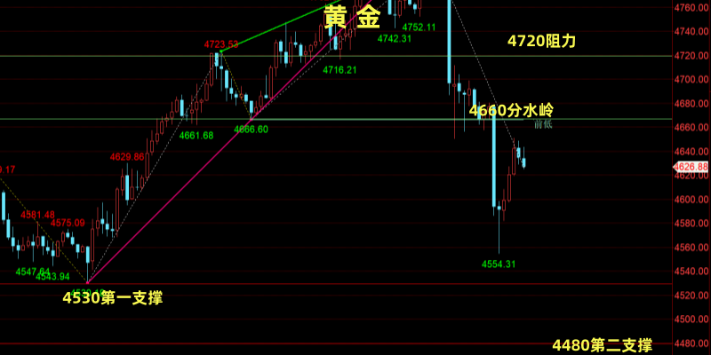 金老虎:特朗普讲话暗藏“矛盾信号”, 地缘预期扰动金价冲高回落 昨日的行情,不仅仅是一次价格的波动,更是一场教科书级别的“多空绞杀”与“情绪逆转”。 早盘金价还在4667一线岌岌可危,看似要击穿关键支撑,让无数多头心惊胆战,市场弥漫着恐慌情绪;然而午后风云突变,主力资金如猛虎下山,不仅瞬间收复失地,更是一口气将价格推升至4793的日内高点,最终日线收出一根带长上影的强势阳线,稳稳收在4756。 这根K线,不仅仅是价格的上涨,更是市场情绪反转的发令枪,也是主力资金完成洗盘、重新夺回定价权的宣言。 那么为什么黄金能走出这种深V反转?这根长上影线是不是见顶信号?今天的行情又该如何应对? 今天,我们