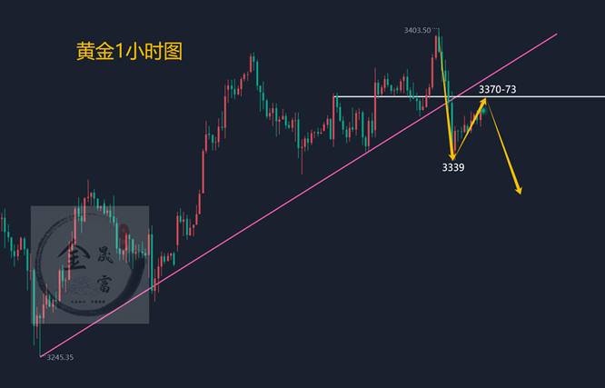 黄金3400昙花一现,大漂亮和东大的一通电话又被打回原形,那么黄金会重整旗鼓还是就此一蹶不振? 黄金昨天来了个急转弯,欧盘还是连阳强势上升,并且突破了3392高点,最高也摸到了3400关口上方,触及3403。但是晚间受大漂亮和东大一通电话影响,急转直下走了连续大阴下跌,最低跌至3339。 昨晚的失业金数据虽然利多,但是当有多个数据或消息面的时候,这时就要看权重,权重大的影响更大一些。所以,二者相较之下失业金利多几乎可以忽略不计。 按照我们日内分析布局思路,交易上在3365直接多止盈3392;晚间回踩3387二次多止损3377,亏10美金。美盘由于跌幅过大,短线再看多明显不合适,做空确实没有勇