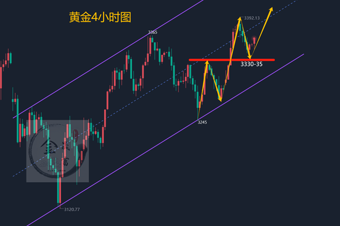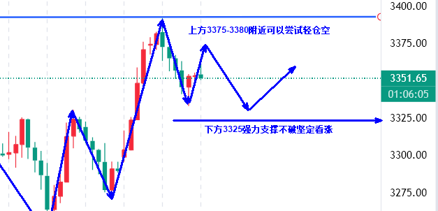 张津镭:避险降温但支撑仍存!黄金高抛低吸,静待非农指引 昨日黄金走了一个冲高回落行情,预判开盘直接刷新近期高点至3392美元一线,不过后续开始回落,欧盘多单手动小亏离场。在跌破3360支撑后晚间最低是到了3332美元,不会后续企稳反弹不少。最终金价是收盘于3352美元,日线收于一根小阴线。 周三(6月4日)金价在触及近四周高点后受美元走强拖累,价格出现回落。不过国际贸易局势的紧张、美国劳动力市场的疲软以及美联储的谨慎态度为黄金市场蒙上了一层不确定性的迷雾。黄金作为避险资产的吸引力并未完全消退,但美元的短期强势无疑限制了其上行空间。 另外,美国部分经济数据表现存在不确定性,市场对美国经济后续发