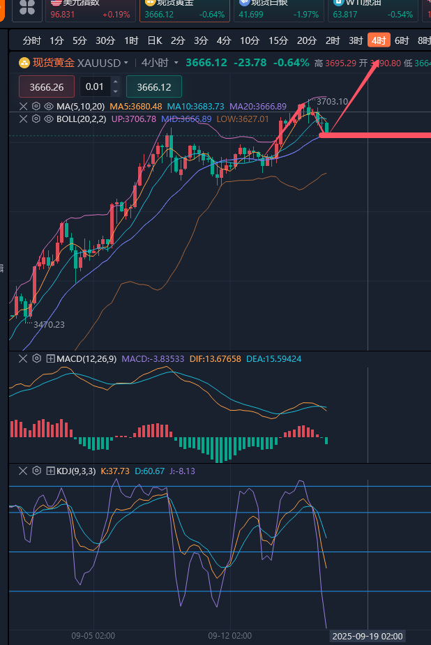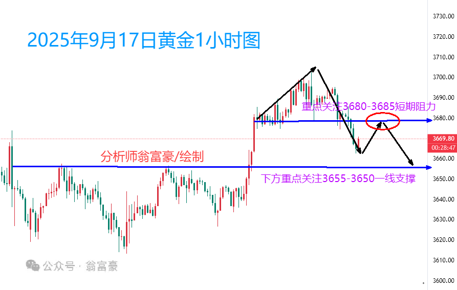 希望各位投资者顺势而为,稳健获利。作为一名指导老师,短时间的投资利得并不值得炫耀,这个市场没有永远的胜者,但对市场总体趋势的把握,才是一个分析师所具备的实力!我所希望看到的是,投资者长期稳健的获利,集小胜为大胜,而不是今日赚的盆体满钵,明日输的一文不剩。做投资,先是做人,然后才是获利。黄金原油外汇资讯及方案关注笔者龚关铭,同时近期会针对部分投资朋友进行中长线布局方案设计,有兴趣的朋友可以及时关注。 ————————消息面 周三黄金价格从周二触及的历史高点回落至3665美元附近,结束连续三日的涨势。美元在关键美联储(Fed)利率决议前小幅回升,为黄金施加一定压力,同时市场获利了结也是短线回落的