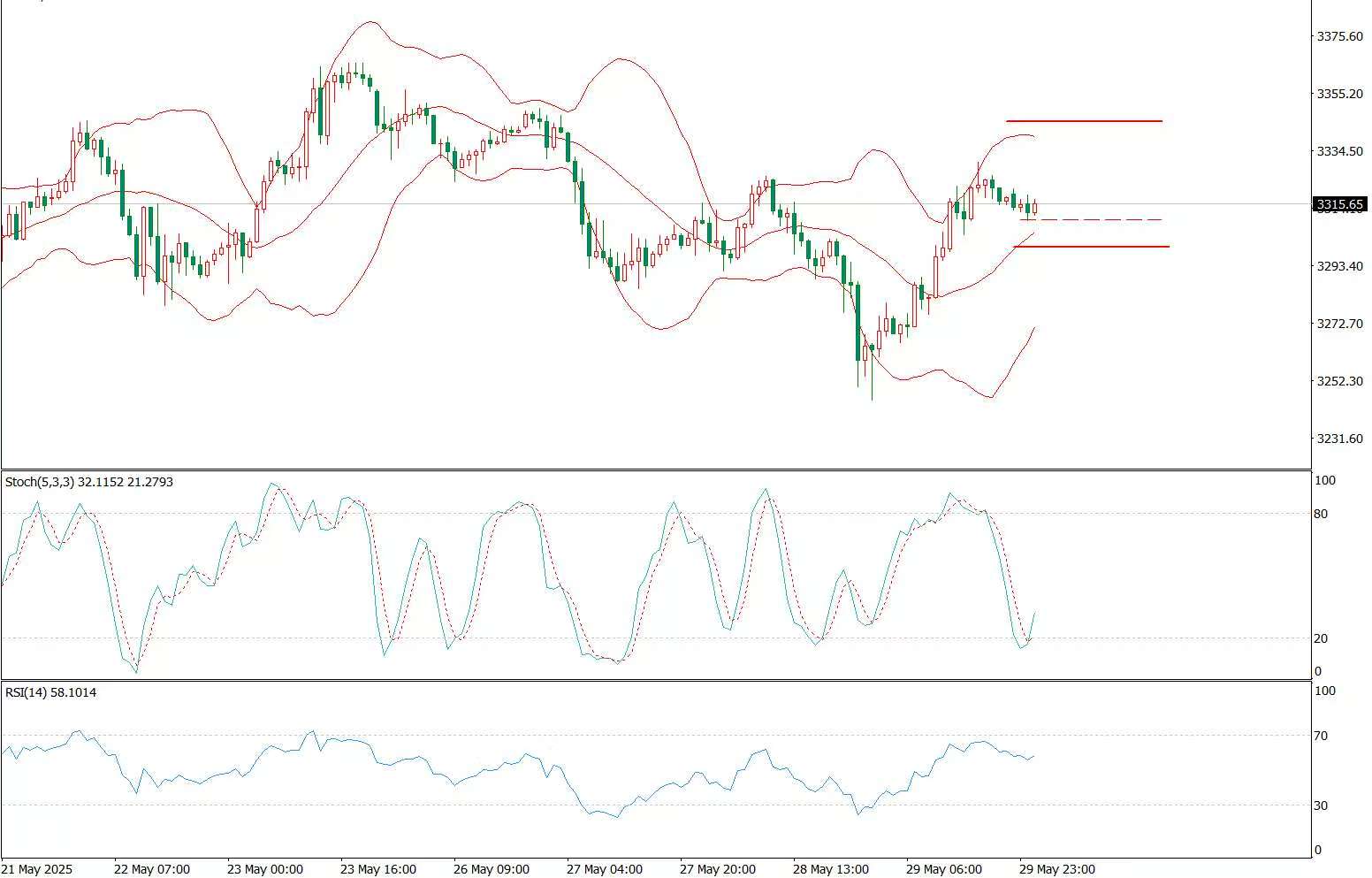 现货黄金市场行情现状简述: 受到特朗普****出人意料推迟了对欧盟加征关税的决定情况下,市场的贸易情绪明显有所缓和,因此限制了本周金价进一步打开上方的空间,目前仍守住了3300大关的重要支撑。此外,众多美联储官员公开呼吁保持利率稳定,直到关税对通胀的影响更加明朗,这一表态强化了市场对美联储可能暂停加息的预期,对金价形成了一定支撑。 大田环球现货黄金参考新闻: 美国公布了第一季度实际GDP年化季率修正值和截至5月24日当周初请失业金人数数据。GDP修正值为-0.2%,好于市场预期的-0.3%,但仍显示经济处于收缩状态。核心PCE物价指数年化季率修正值为3.4%,低于预期3.5%和前值3