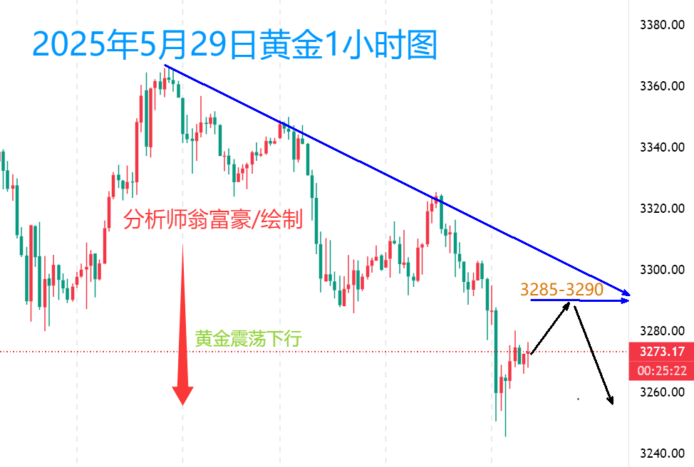 张津镭:风险事件持续利好,黄金延续下行风险 昨日黄金走了一个过山车行情,亚盘开盘有所回落,跌至3290附近开始反弹,在到底3325附近再度下跌,晚间最低是到了3276美元一线,跌势并没有想象的那么强。最终金价是收盘于3286美元,日线收于3连阴。 周四(5月29日)之前中东地区局势紧张,美国和伊朗那剑拔弩张的,加沙停火谈判也中断了,俄乌冲突停火协议还搁浅着,这一系列事件就像给黄金打了一针兴奋剂,价格蹭蹭往上涨。不过现在呢,美国联邦法院裁定特朗普“解放日”关税政策越权,美伊核协议谈判也在推进,地缘风险缓和了,黄金的避险吸引力也就跟着降温了,就像给火浇了一盆冷水。 可以说,现在技术性看空,黄金也