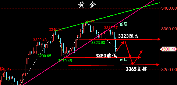 昨日黄金市场早盘开盘在3343.5的位置后行情先拉升给出3350.5的位置后行情受到本轮下行趋势线压力震荡回落,美盘时段日线最低给到了3284.8的位置后行情尾盘拉升,日线最终收线在了3300.5的位置后行情以一根上下影线等长的大阴线收线,而这样的形态收尾后,今日3285多保守3282多止损3278,目标看3315和3323和3330压力离场,今日3332附近空 白银市场昨日开盘在33.465的位置后行情先拉升给出33.519的位置后行情强势回落,日线最低给到了32.755的位置后行情受到日线级别布林中轨支撑快速拉升,日线最终收线在了33.256的位置后,日线以一根下影线很长的锤头形态收