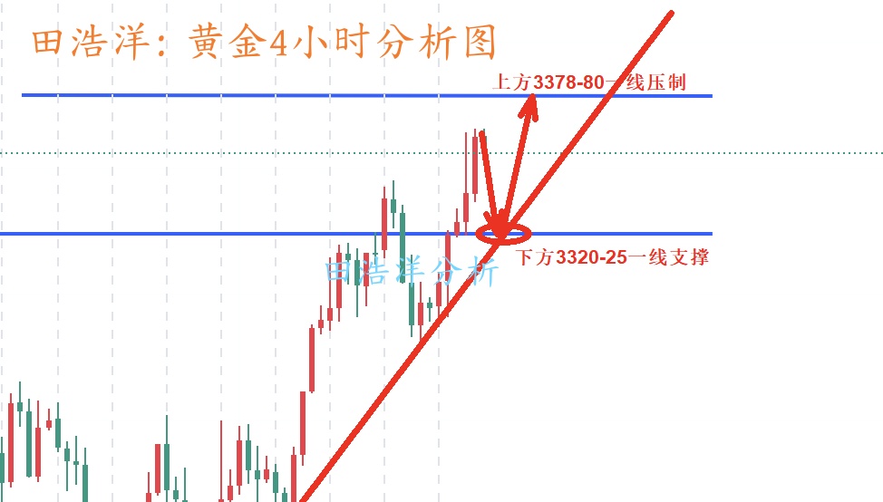 黄金根据周五收盘情况来看,尾盘最高触及3366一线震荡下行,但是收盘在3356一线,也就是收盘在3345一线上方,那么下周依旧是以回踩看多为主,不排除行情突破3345一线的可能性,虽然有回踩迹象,但是我们依旧是以主多趋势为主,上方关注重要压制3378-80一线重要压制位置,所以下周我们回踩继续做多,如果你目前黄金操作不理想,希望田浩洋能让你的投资少走弯路,欢迎前来沟通交流! 从4小时行情分析来看,上方关注3378-80一线压制,下方短期支撑关注3320-25一线短期支撑,重点关注3300-3306一线关口支撑,暂时依托此区间保持低多参与主基调不变,中间位置一律多看少动谨慎追单,耐心等待关键点