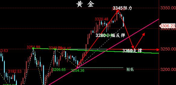 现货黄金: 消息面:本交易日将出炉欧美国家5月份PMI数据、美国初请失业金人数变动、美国4月成屋销售年化总数,投资者需要予以关注,另外,继续关注国际贸易局势、地缘局势和G7会议相关消息,留意美联储官员的讲话。 技术面:欧盘金价如果成功突破3345短期阻力位,形成新的上升通道;不过投资者也需警惕市场短期调整风险。黄金近期涨幅较大,可能存在技术性回调需求。此外,如果美国经济数据意外强劲或地缘政治出现缓和迹象,都可能暂时抑制金价涨势。目前黄金已经从3345高点一路下跌至3306附近,短期重要压力位置在早间3322附近;破位上看3332-3345附近;下方重点支撑位置是3280的支撑带;破位下看32
