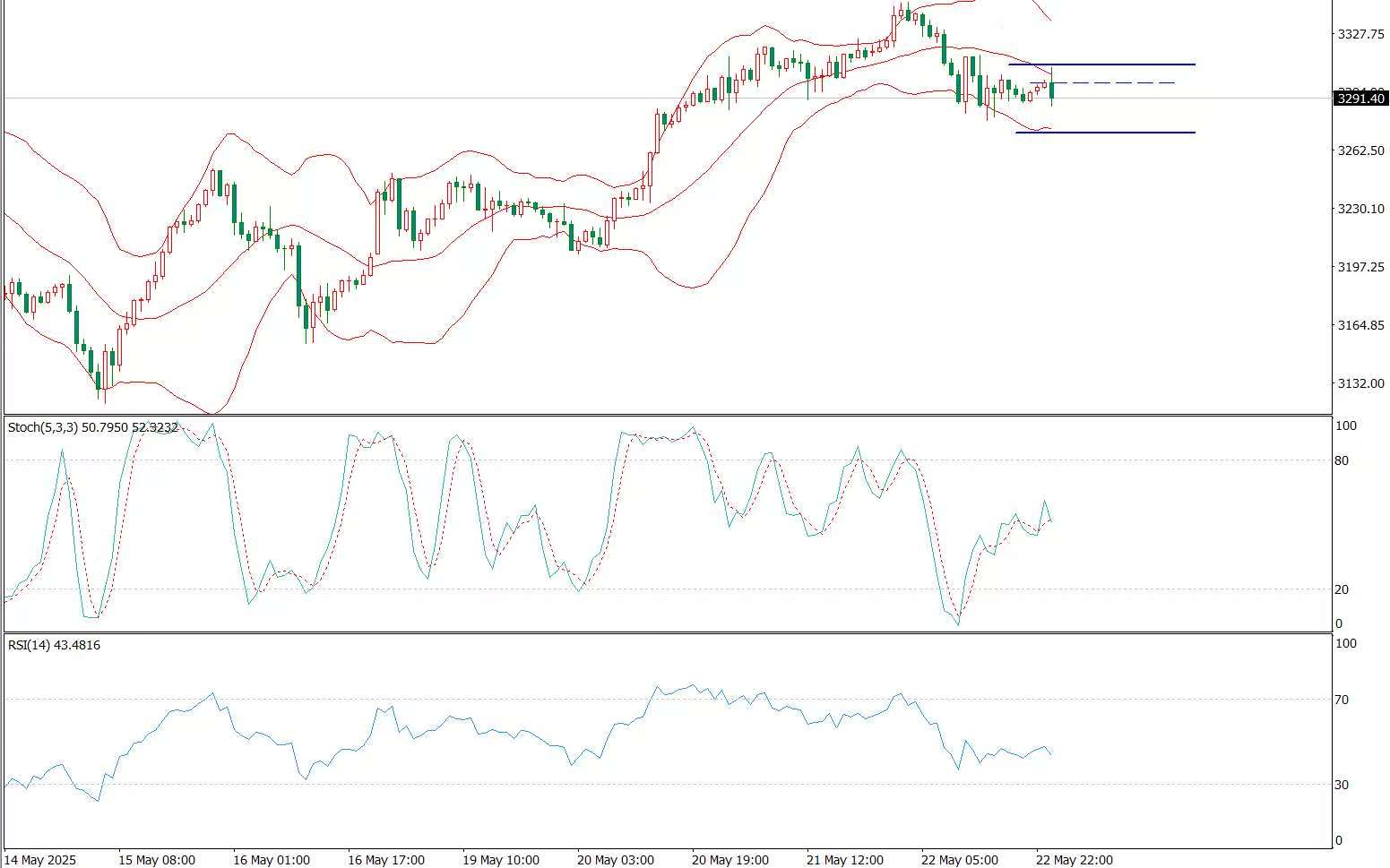 周五(5月23日)亚市盘初,现货黄金窄幅震荡,目前交投于3295.70美元/盎司附近。经过本周前三个交易日的上涨后,周四亚市金价曾短暂触及3345美元的两周高点,随后急转直下,最终收于3294美元附近。 黄金4小时图来看,昨日承压618分割阻力3317-20一线,回踩并未完全确认50分割位置3279-80,最低是3290,然后今日早间先一波续涨至3245,再欧盘冲高回落洗回去,刚最低3283,最终仍会得到分割位置的确认.黄金小时线图来看:亚盘从3314支撑继续慢涨拉升至3345高度,午后不管是回踩618分割位置3228,还是顶底位置或中轨3220,都是直接被连跌下穿的,市场就是摆明了一定要扫