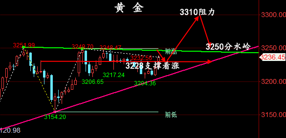 张尧浠:地缘局势避险升温、金价保持反弹看涨前景 上交易日周二(5月20日):国际黄金强势反弹,突破30日均线近期阻力压制,并收阳,多头力量增强,短期均线转为支撑,日内也可依托此支撑选择看涨入场。后市前景将继续保持在日图的上升趋势线上方看涨不变。 具体走势上,金价自亚市 开于3230.66美元/盎司, 先行走弱,于11点时段录得 日内低点3204.50美元 ,之后则止跌运行,到欧盘开盘后,多头力量开始发力,并到美盘开盘,连续拉升走强,并最终持稳走强,于盘尾录得 日内高点3295.52美元, 且 收于3289.70美元,日振幅91.02美元,收涨59.04美元,涨幅1.83%。 影响上, 亚盘受
