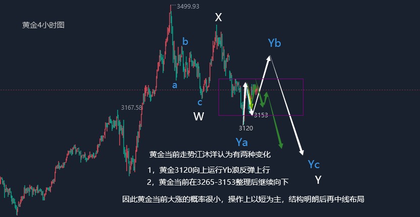 据路孚特,美国政坛正在上演一场惊心动魄的"减税大战"。面对党内分歧和微弱多数席位的压力,特朗普总统周二(5月20日)决定亲自出马,试图在关键时刻力挽狂澜。这场政治博弈不仅关乎一项重要法案的命运,更将考验特朗普对共和党的实际掌控力。江沐洋指出,如果特朗普未能成功弥合党内分歧,导致减税法案推迟或大幅修改,市场可能认为美国财政政策前景不明朗,美元短期内可能走弱。僵局可能引发投资者对美国政一府治理能力的担忧,部分资金可能暂时流向避险资产(如日元、黄金),从而削弱美元。 现货黄金: 从波浪结构上来看,3500向下初步判断为联合型(W、X、Y)浪调整,4小时图中,W浪为3500-3201,X浪为3201