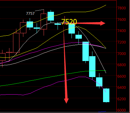 【金升金聚】 10.26午夜 6天跌足1300点,每天比EIA还EIA! 天然气自10月13号冲新高后,行情回调后反弹至7520一线后开启大跌之路,至今日晚间最低触及6171一线。抛开上周的三日不说,上周末的周评中,本人对于天然气的分析就明确表明本周的开端将会是比较关键的,若行情突破日线方面的支撑那么空头下方将会有很大的空间。而