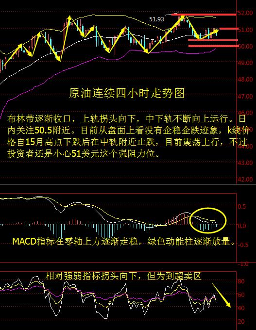 文/慕辰论金 国际基本面分析: 上周国际油价冲高后小幅回落,因美国EIA原油库存意外大减,美原油12月期货一度刷新15个月新高至52.22美元/桶。不过随后美油自高位回落。 俄罗斯方面可能继续增加产量的言论曾令部分多头获利了结,以观望产油国对于限产的进一步行动,美元走强也限制了油价的上行空间,美油收于51美元/桶整数