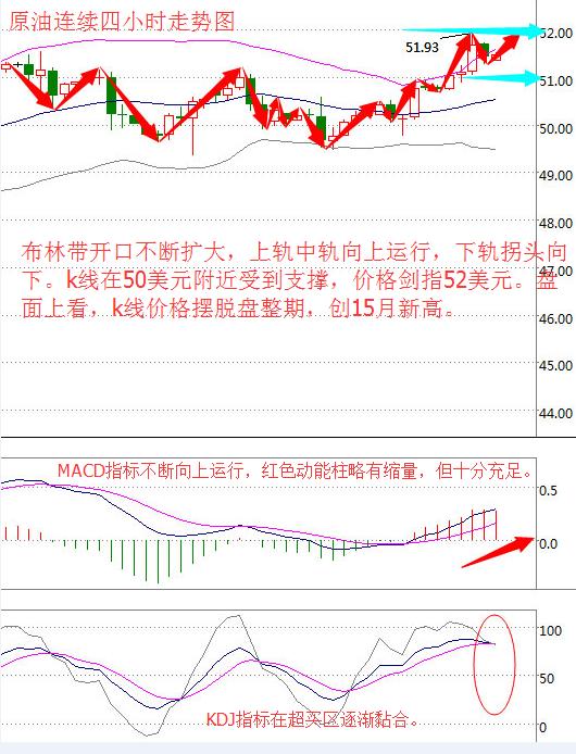 前言:周三10月19日北京时间22:45,因EIA原油库存大减利好,并且分项数据均显示利好,美国WTI原油暴涨至51.73美元/桶。并突破今年6月9日高位51.67美元/桶,刷新2015年7月16日超过15个月的新高。与此同时,布伦特原油12月期货也站上53美元/桶。 行情回顾:V信: a655270 昨日晚间EIA布局多单,预计冲击到51.6附近,没想到远