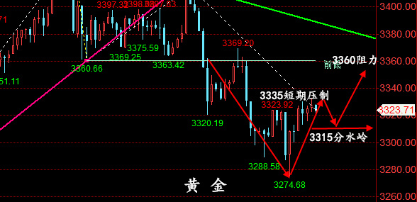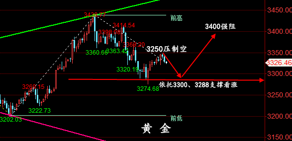 意志,是一种目标,也是一种决心。当一个人真正想改变自己时,就会从内心产生一种坚定的意志力,清晰地告诉自己想要什么,并且更加积极地行动。 认准目标,就绝不轻易放弃;在做事的过程中砥砺自我,不断超越;即便面对挑战,也能昂首面对。意志坚定的人,前行的脚步会更加稳健。——柳沁雯 >>>>黄金走势解析 国际黄金周四在早盘延续强势冲高3414一线后,日内较为意外地连续走跌下探,截止收盘,下部低位已经来到了3288附近,整体跌幅高达一百美金…… 从日线来看,在本周前期连阳极强上攻后,并没有出现连阳的破高,而是后续出现了较为深度的回调,昨日大阴,二次测试中轨附近支撑,所以日内能否在此关键位置二次止跌企稳较为