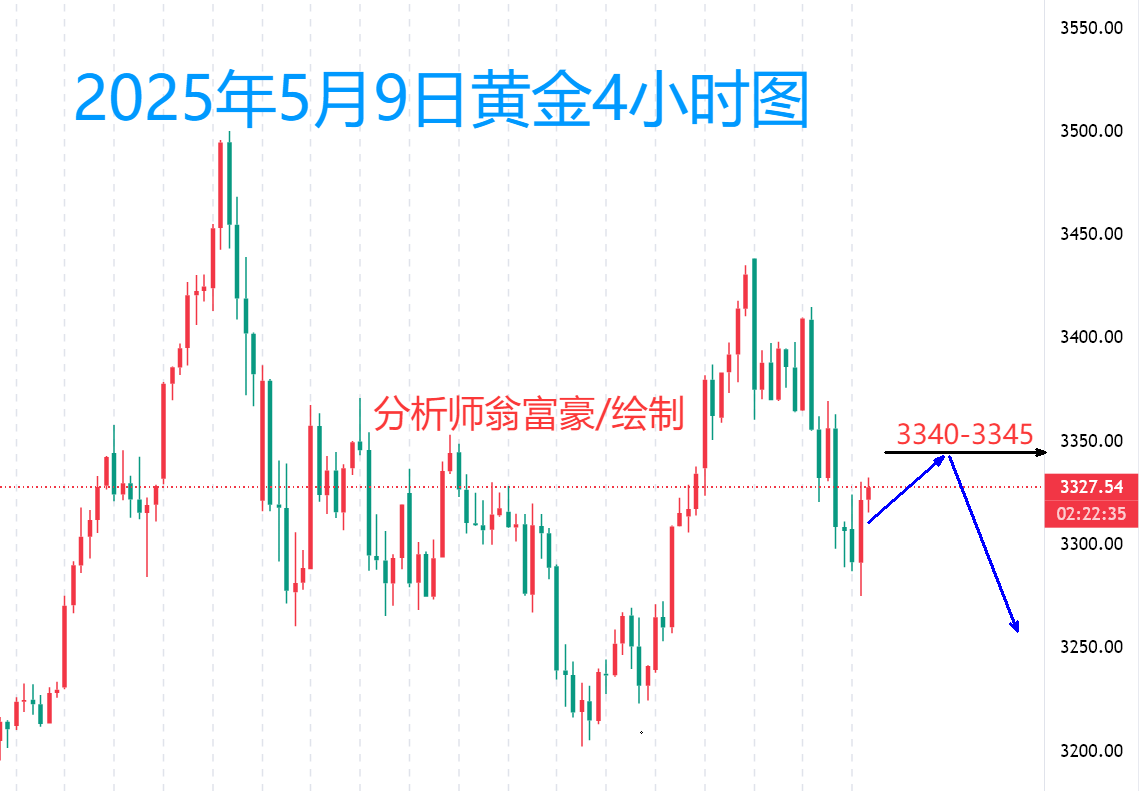张津镭:黄金遭“贸易协议”暴击!短期或延续调整态势 昨日黄金走了一个冲高回落行情,亚盘开盘便反弹不少,直接上到3410上方,不过午盘开始回落给的3995附近空单完美进场,随后开始大跌到了3319美元,空单于3330-40附近止盈离场。大赚50余美金。美盘再度反弹一波后跌破3300关口,最低是到了3288美元,日线收于3305美元,日线收于一根大阴线。 周五(5月9日)特朗普和英国首相斯塔默宣布达成“突破性”贸易协议,英国同意降低关税,市场情绪瞬间嗨翻天,黄金作为避险资产直接被“打入冷宫”。另外,鲍威尔继续嘴硬,表示“不急着降息”,美元指数趁机狂飙,黄金因此大跌。 虽然印巴冲突双方打得不可开交