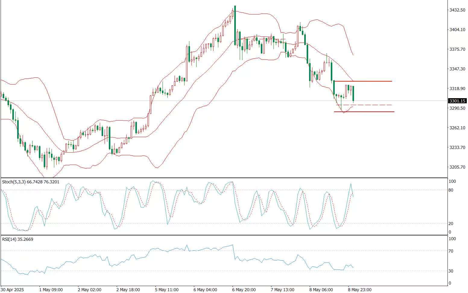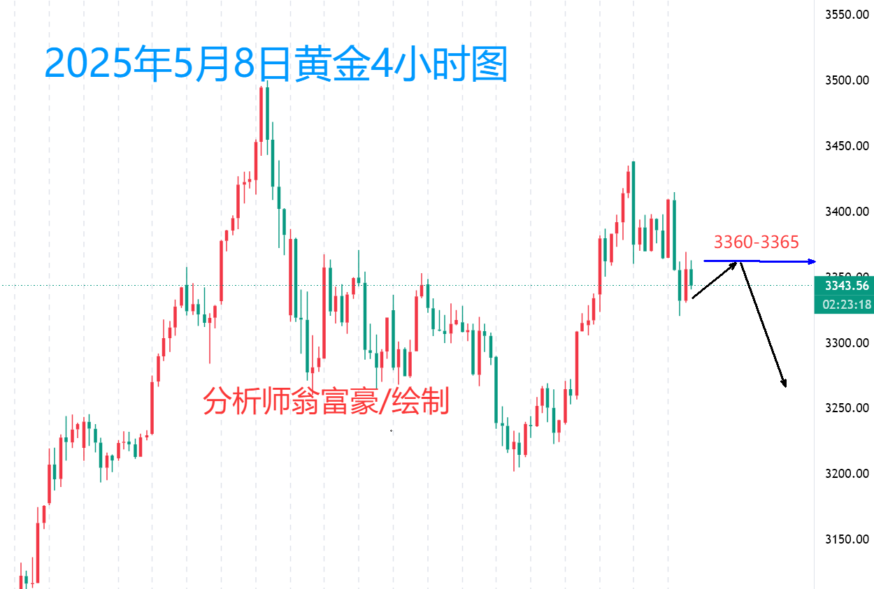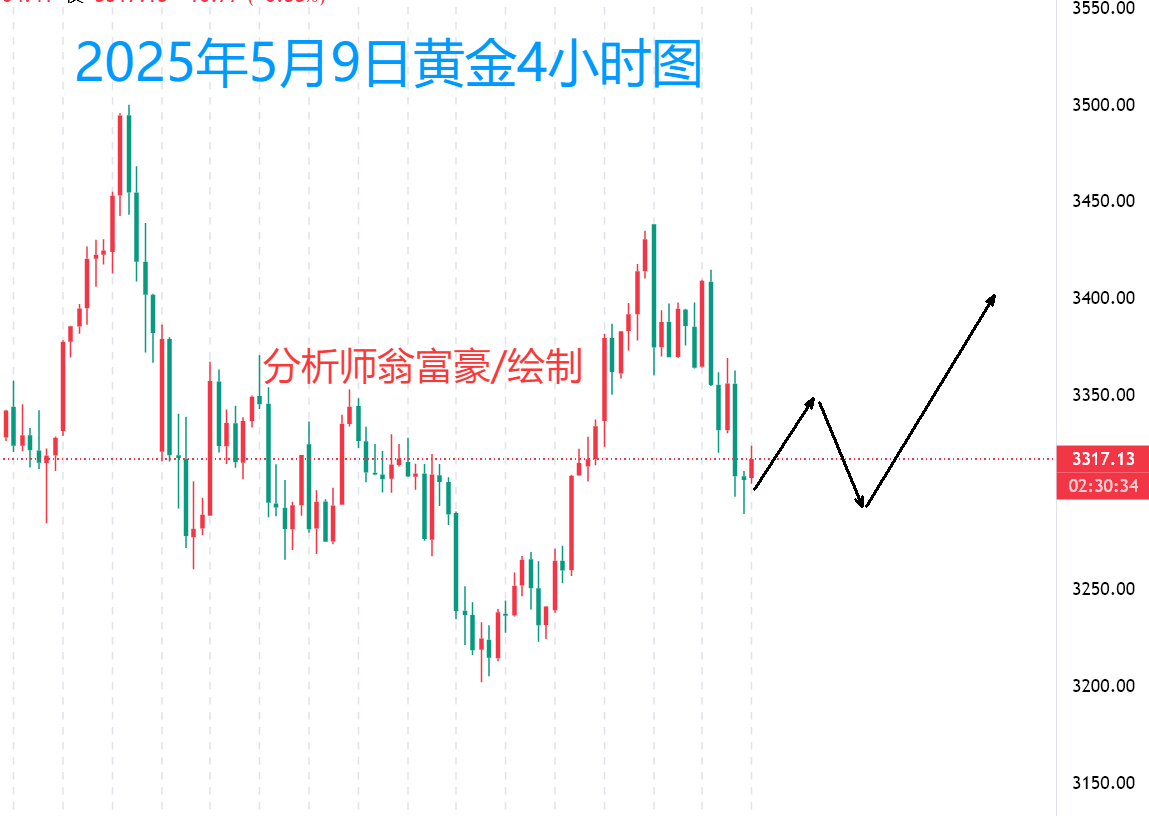 截止至2025年05月09日亚盘时段,受到美联储隔夜利率决议的影响,国际黄金价格继续保持着高位宽幅震荡的节奏,此前一度上涨到3400大关的上方,但很快就出现了迅速回落,这主要还是在于避险情绪的降温,尤其是贸易局势的缓和一定程度上帮助美元反弹。不过全球各国央行最近都在持续增持黄金,这使得金价依然维持在历史一线,接下来市场会持续发酵美联储在下个月的降息预期,理论上会对黄金形成利好。 美联储决议释放鹰派利空金价 现货黄金小幅反弹,回落至3400关口下方,对国际贸易谈判的乐观情绪打压黄金的避险买需,美联储如期维持利率不变,但美联储主席鲍威尔的讲话比市场预期的鹰派,美元指数录得近两周最大单日涨