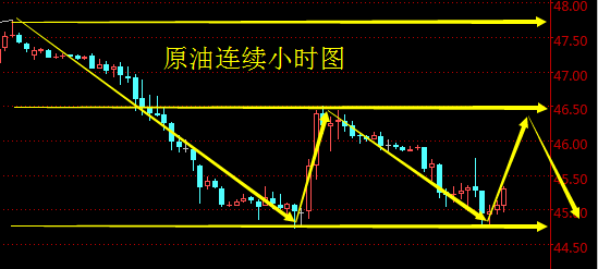 原油周二高位回落收低。过程依旧是迂回走法。亚盘46.0一线开盘即慢性下跌。一直震荡至欧盘后美盘前。触及45.0支撑陷入震荡。然后美盘反弹诱多。二次去摸高45.70,尾盘转阴下跌。并且刷新了日内低点。重新去下探此前低位区域44.77一带。一波三折的走法。日图收得偏低,虽然今天开盘出现一定反弹收复。但昨日的中阴线比较饱满