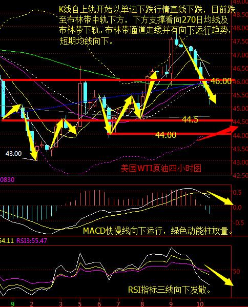 摘要油价下跌动能较足,预计亚盘时段将继续震荡走低,若反弹,上方压力则看向46美元位置。 国际消息面 分析: 周一(9月12日)亚市开盘,油价直接低开并大幅走低,最低在触及45.08美元/桶后反弹,目前跌幅超过1%,最新报45.39美元/桶。 上周五(9月9日)美国WTI原油10月期货收跌1.74美元,或3.65%,报45.88美元/桶,盘中最低