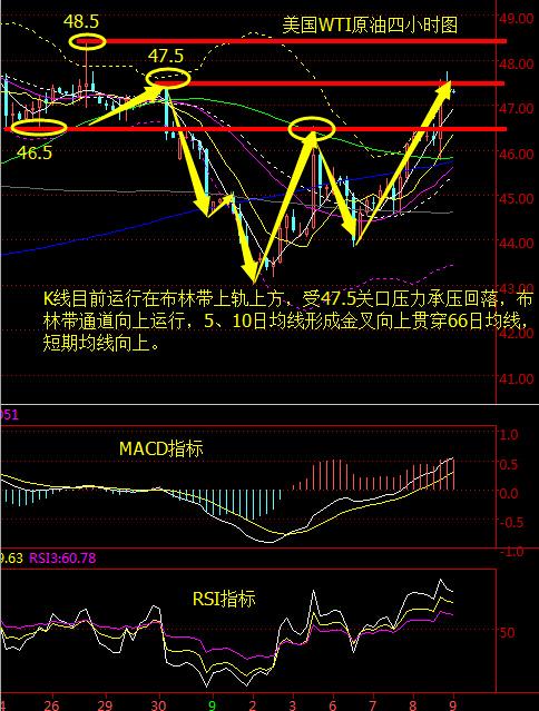 摘要美国WTI原油从私下是走势图来看,K线目前运行在布林带上轨上方,受47.5关口压力承压回落,布林带通道向上运行,5、10日均线形成金叉向上贯穿66日均线,短期均线向上。 基本面分析: 美国WTI原油10月期货周四(9月8日)收涨2.12美元,或4.66%,报47.62美元/桶,盘中最高触及47.74美元/桶。布伦特原油11月期货周四收涨2.01