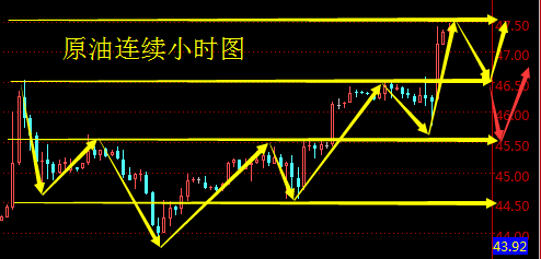 原油市场解读 昨日因API利多,亚盘直接高开,瞬间拉升60个点,想必是让持有空单的朋友都骂娘不止,但亚欧盘一直处于小幅震荡行情,金市琼瑶一直坚信震荡只是为蓄势,这种箱体震荡一直持续到EIA出来之前,亚欧盘46.50的有效压力位,转换成了支撑位,油价瞬间爆跌了80个点。就在所有人都以为下行通道即将打开的时候,EIA数据利多,原油