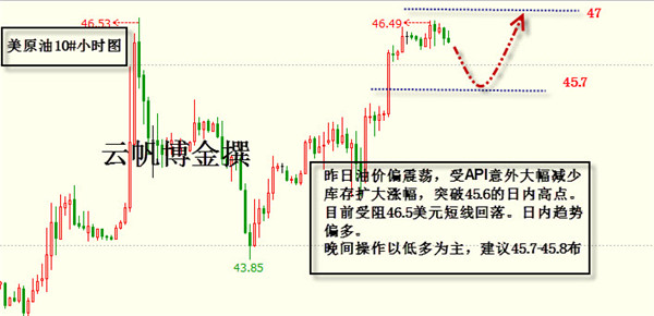 今早推迟公布的API数据显示,API原油库存意外大幅下降1208.5万桶,远超预期的下降8.3万桶和前值的增加94.2万桶,API原油库存在经历了两周上涨后,上周数据显示其意外下滑超1200万桶,为自1999年1月之后的最大降幅;数据公布后美油布油短线扩大涨幅至近3%,分别现报46.15美元/桶和48.53美元/桶。 行情回顾: 近期市场异常火