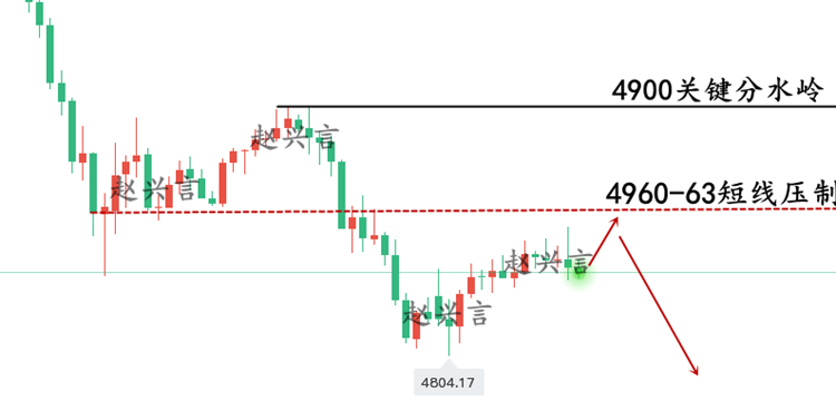 昨日晚间6点之后,黄金先行走了一波高台跳水,一泻千里的架势直接逼近4900的位置, 当时兴言也是通知学员们在4900进场了一个多单,可惜10分钟不到第二波暴跌来袭,预期的小反弹也是直接失败,亏损15个点,但晚盘的时间兴言也发了博客说4900附近做空,目标看向4835-4800,昨晚也是最高上涨至4899一线,到达我们的做空点位,最低跌至4804,有关注兴言博客和策略的,只要跟上了,那么昨天深夜的这一波100点利润必定是轻松拿捏了!!! 至于黄金价格的持续下跌,主要还是因为美联储宣布维持利率不变,这一预期与年初的市场预期大相径庭;当时市场曾预计年内将实施近60个基点的宽松政策。 而在昨日高台跳