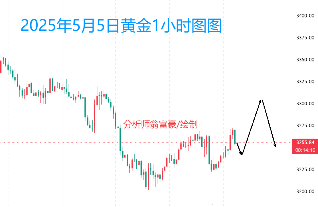 黄金实时行情分析:5月5号周一早盘,黄金价格高点触及3272一线遇阻回落,上周多次低位做多拿到的空间都比较大,假期也想轻松点就没写分析,临盘只需要照顾好找到我的朋友就可以了。大趋势方面来看,月线MACD量能还是出于放量阶段,但是周线MACD量能已经逐步减弱,5月大方向上以月线布林带上轨3340下方看空,低位以日线图形趋势线支撑点3160上方看涨对待。说个题外话,在懂王任期内,黄金价格预测回撤的力度会很有限。 盘面上来看目前1小时布林带三轨平行发展,上轨承压3278一线,中轨支撑位于3248,下轨支撑在3222位置,日内涨跌幅度不大,先看1小时布林带中上轨区间盘整即可。今日阻力方面关注1小时布