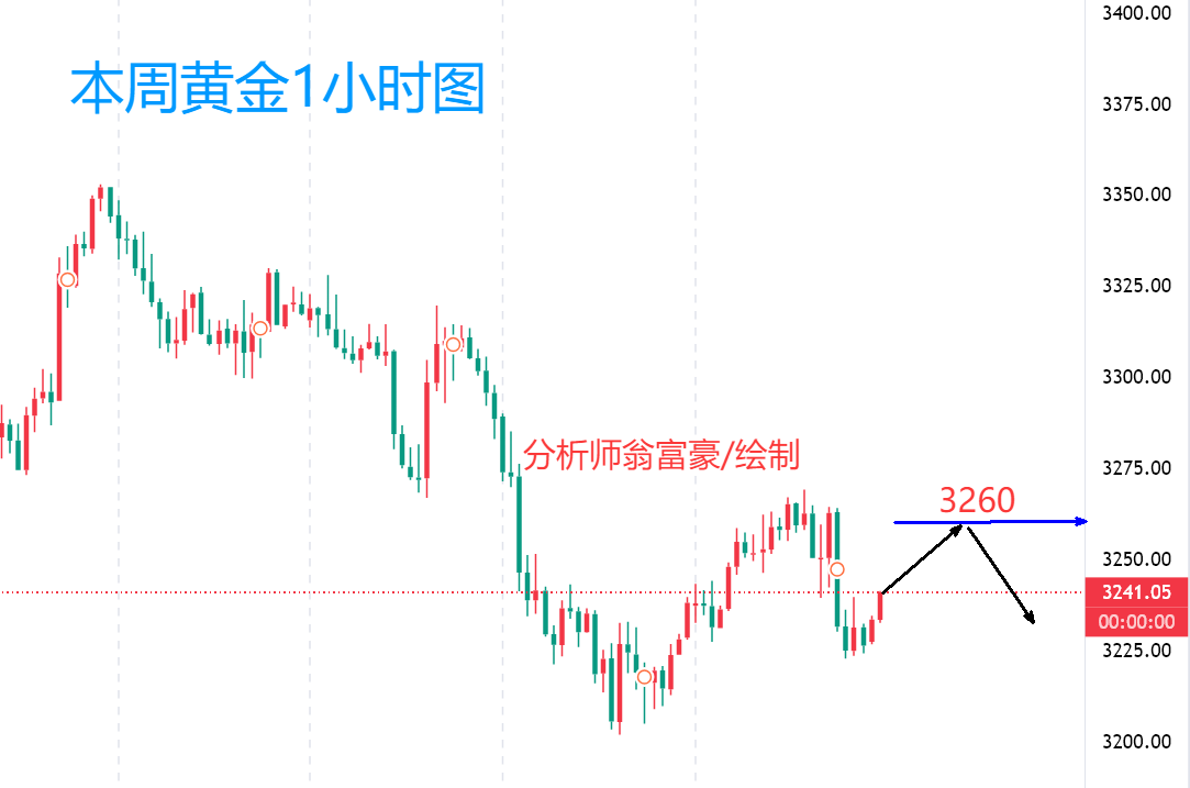 张津镭:冲高回落暗藏玄机,下周一黄金策略全解析 昨日黄金走了一个冲高回落行情,和预期方向差不多,就是反弹力度没有那么强,美盘前给的3250附近多单进场,美盘冲高3269后回落至3260上方手动小赚离场。随后果断反手做空,在3240下方手动离场,多空来回大赚30余美金。最终金价是收盘于3240美元,日线收于一根小阳十字。 本周的现货黄金市场就像一部情节跌宕起伏的“金融大戏”,各种消息面因素如同剧中的人物和事件,共同推动着金价的走向,让投资者们的心情跟着“上蹿下跳”,仿佛坐了一趟“刺激的过山车”!特朗普****计划宣布首批贸易协议,可能减少部分关税,若进展顺利,避险需求或进一步回落,压制金价。加