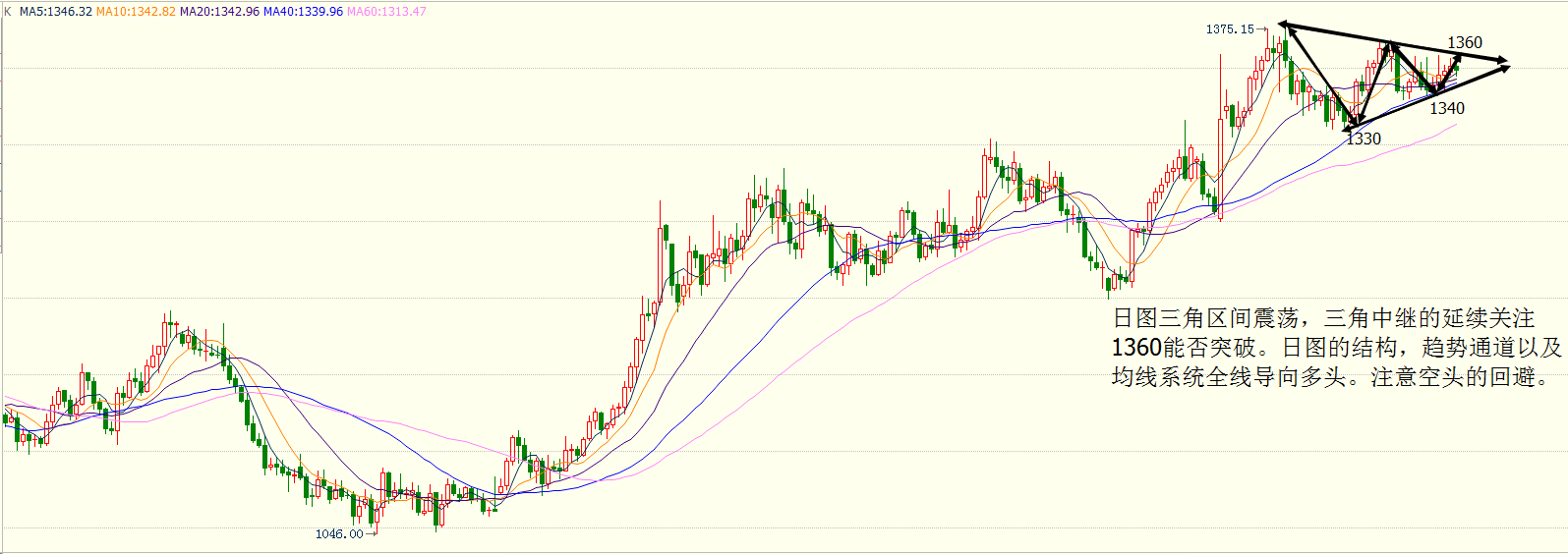 秋末悔城:黄金继续震荡,原油破高待交割 黄金: 本周黄金整体慢牛上攻,前半周日内小幅度上攻,美盘阶段回撤,总体形成连续碎阳上行。上影较长。上方第一压力1360一线,下方第一支撑1330一线,30美金区间调整,有望为后市带来60美金的单边突破行情。、至此,在区间震荡,切勿追涨杀跌。 在本周交易市场当中,市场主要围绕美